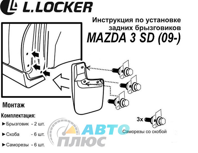 Инструкция по установке задних брызговиков на Мазда 3 2009- Седан L.Locker